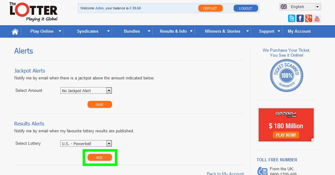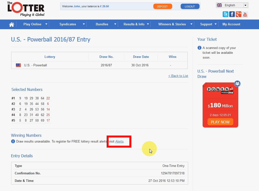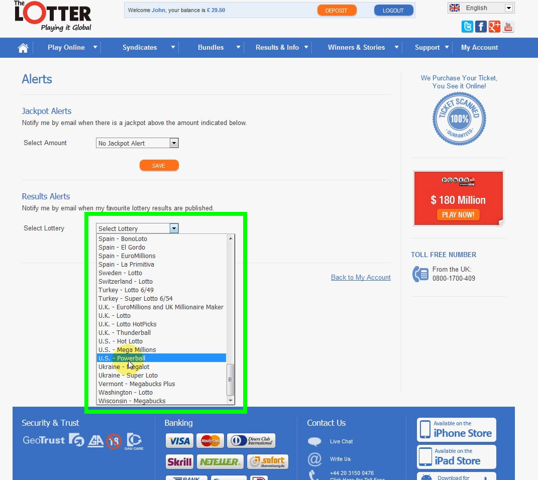 • A very neat feature that this Lottery site offers is Results Alerts.